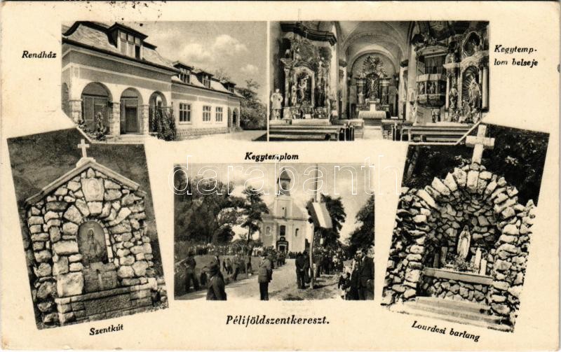 1939 Péliföldszentkereszt (Bajót), Rendház, Kegytemplom, belső, Szentkút, Lourdes-i barlang (EK)