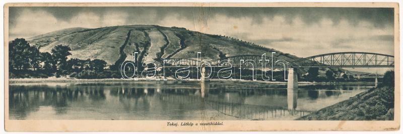 1939 Tokaj, látkép a vasúti híddal. kihajtható panorámalap (gyűrődés /...