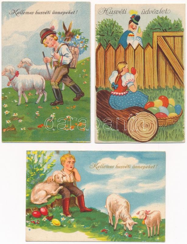 3 db RÉGI magyar húsvéti üdvözlő képeslap / 3 pre-1945 Hungarian Easte...