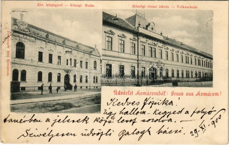 1900 Komárom, Komárnó; Kir. közjegyző, községi elemi iskola. Freisinger Mór kiadása / notary office and school (EK)