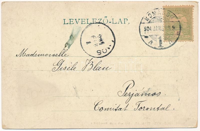 1904 Komárom, Komárnó; Vágtorkolat, tutajosok. Schönwald Tivadar kiadása / Váh river mouth, rafters. Art Nouveau (EK)