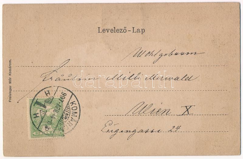 1907 Komárom, Komárno; Freisinger Mór kiadása. Címeres, szecessziós li... https://www.darabanth.com/en/415-Online-auction/415.0/Postcards/Slovakia~1000007/1907-Komarom-Komarno-Freisinger-Mor-kiadasa-Cimeres-szecesszios-litho-keret-Totale-Ansic~II2602762