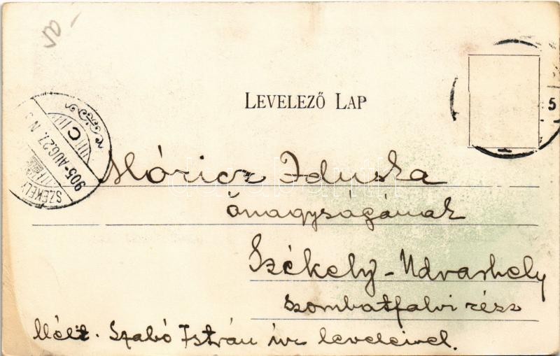 Description: 1905 Büdöspataka-fürdő, Bizusa-Bai; Erzsébet kút, Bemenet a fürdőhöz, Sétaút. Dr. Móricz Aladár amatőr felvétele / spring source, spa, bath, promenade (r)