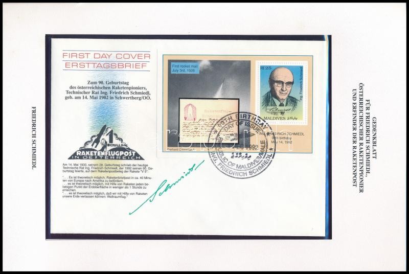 Description: Friedrich Schmiedl (1902-1994) osztrák rakétatudós német űrhajós aláírása emlékborítékon / Signature ofFriedrich Schmiedl Austrian rocket scientist astronaut on cover