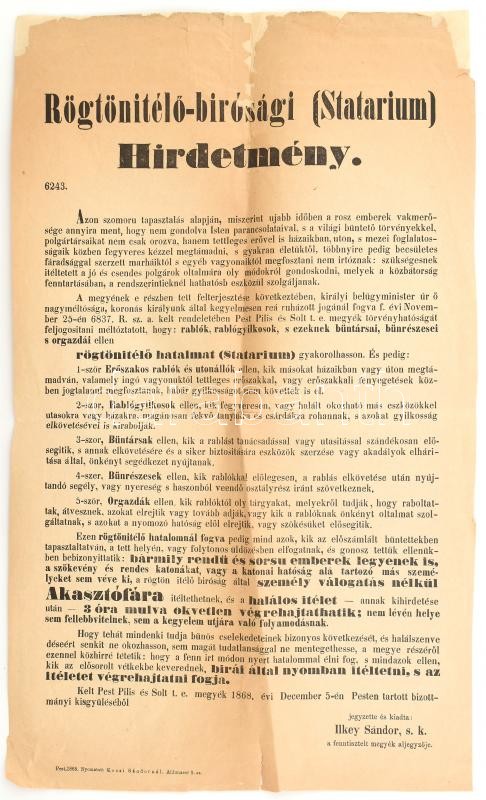 https://www.darabanth.com/en/416-Online-auction/416.0/Art-and-other-collectibles/Printed-Materials~1000002/1868-Pest-megye-hirdetmeny-a-rogtonbiraskodas-bevezetese-targyaban-42x60-cm-Serult~II2568287