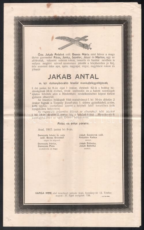 https://www.darabanth.com/en/416-Online-auction/416.0/Art-and-other-collectibles/Printed-Materials~1000002/1905-1917-Arad-2-db-halotti-ertesito~II2611563