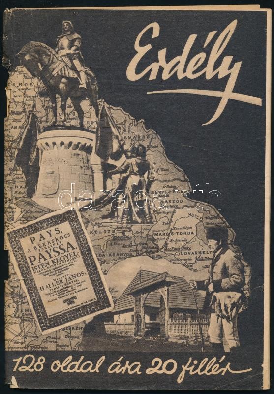 1940 Erdély. Írták: Asztalos Miklós, Cholnoky Jenő, Gunda Béla, Kniezsa István, Kozocsa Sándor. Bp., 1940, Magyar Népművelők Társasága, 127 p. Gazdag fekete-fehér képanyaggal illusztrált. Kiadói tűzött papírkötés, szakadt borítóval.