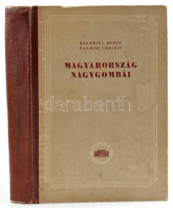 Bánhegyi József, Bohus Gábor, Kalmár Zoltán, Ubrizsy Gábor: Magyarország nagygombái a kalaposgombák kivételével. Magyarország virágtalan növényeinek határozó kézikönyve II. rész. Borzsák Sándor és Koch Ernőné rajzaival. Bp., 1953, Akadémiai Kiadó, 368 p. Oldalszámozáson kívüli, fekete-fehér képtáblákkal. Kiadói félvászon-kötés, kissé sérült, foltos borítóval, kissé kopott gerinccel. Megjelent 1000 példányban.