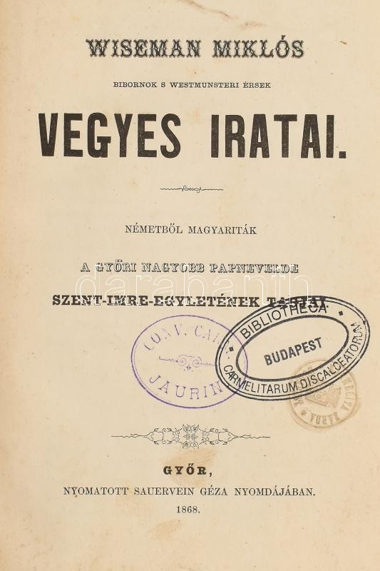 https://www.darabanth.com/en/416-Online-auction/416.0/Books/Books-Religion~1000021/Wiseman-Miklos-vegyes-iratai-Gyor-1868-Sauervein-Geza-Kiadoi-vaszonkotesben~II2617303