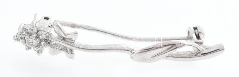 Ezüst(Ag) virágos kitűző, jelzett, h: 4 cm, bruttó: 2,3 g