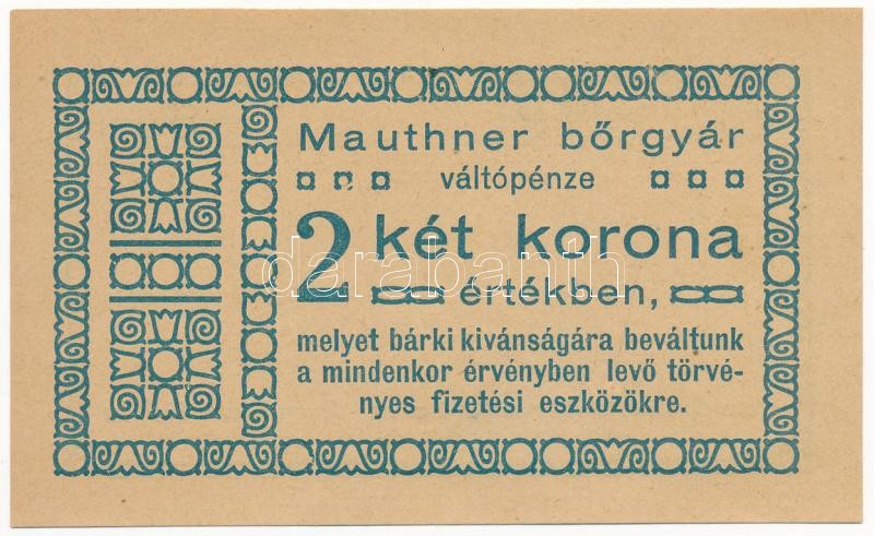 Újpest 1919. 2K "Mauthner Bőrgyár" váltópénz T:I-