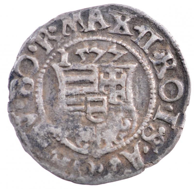 https://www.darabanth.com/en/416-Online-auction/416.0/Numismatics/Hungarian-coins-and-coins-with-Hungarian-mint-marks~1500008/1577K-B-Denar-Ag-Miksa-0-44g-T1-2-patina-Hungary-1577K-B-Denar-Ag-Maximilian-0-44g-CAU-~II2602370