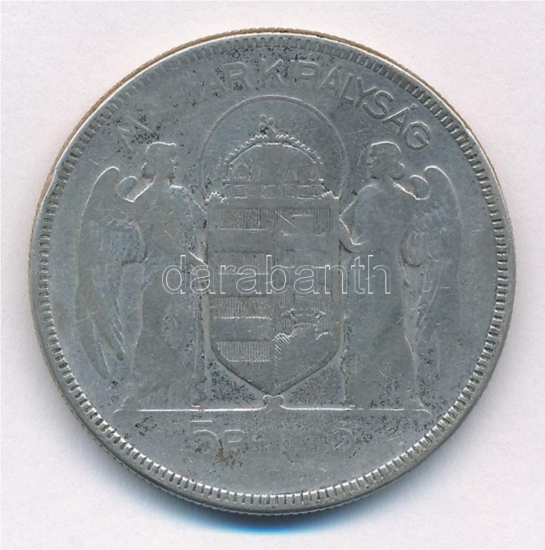 https://www.darabanth.com/en/416-Online-auction/416.0/Numismatics/Hungarian-coins-and-coins-with-Hungarian-mint-marks~1500008/1930-5P-Ag-Horthy-jobbra-T3-patina-Adamo-P8~II2619539