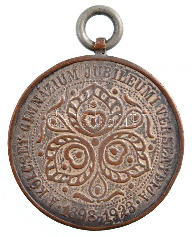 1923. "Kölcsey-gimnázium jubileumi versenydíja 1898-1923" kétoldalas ezüstözött Br díjérem füllel (30mm) T:2 patina, kopott ezüstözés, kis ph