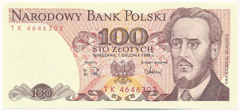 Poland 1988. 100 Zlotych "TK 4646303" C:AU