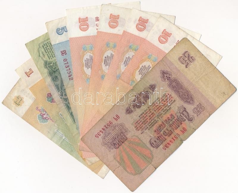 Oroszország 1961-1991. 1R-25R (9db/6xklf) T:III,III- folt, az egyiken ... https://www.darabanth.com/en/416-Online-auction/416.0/Numismatics/Worldwide-banknotes~1500012/Oroszorszag-1961-1991-1R-25R-9db6xklf-TIII-III-folt-az-egyiken-szakadas-anyaghiany-Russi~II2613578