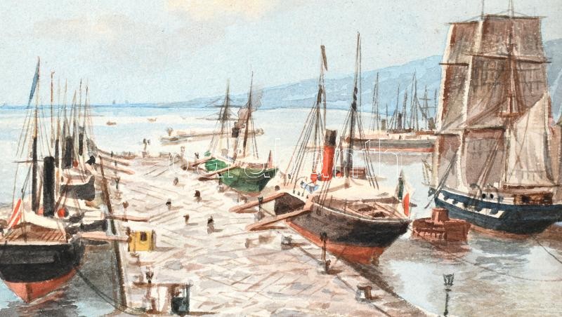 Jelzés nélkül, feltehetően 1900 körül működött festő: Kikötő. Akvarell...