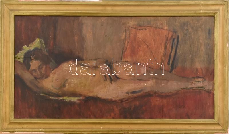 Kunffy jelzéssel: Női akt. Olaj, falemez, jelzett, sérült, 28×57 cm.. ...