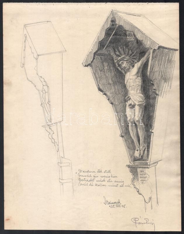 Páris Erzsi (1887-?): Kereszt Steinachban, 1935. Ceruza, papír, jelzet...