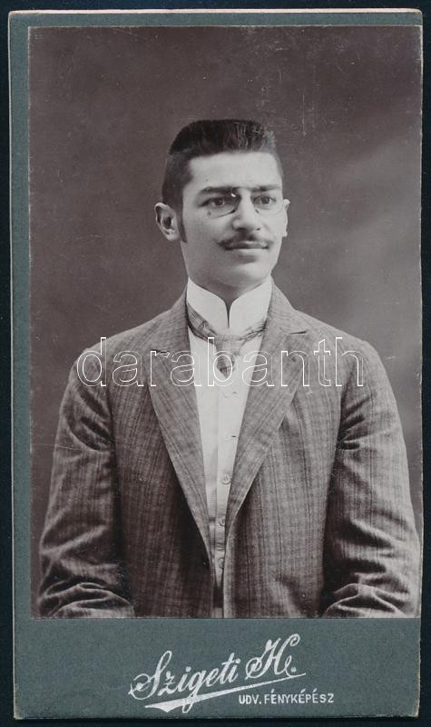 1905 Férfiportré, keményhátú fotó Szigeti szolnoki műterméből, hátolda...
