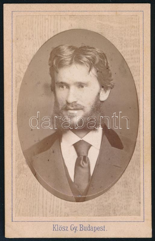 Description: cca 1880 Dr. Tauffer Vilmos (1851-1934) szülész, nőgyógyász, keményhátú, domborított porcelán hatású fotó Klösz György budapesti műterméből, vizitkártya, 10,5x6,5 cm