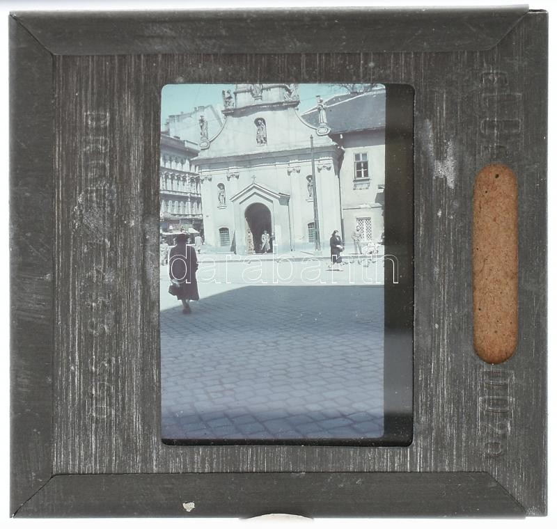 cca 1940 Utcarészlet templommal, 1 db Agfacolor színes diapozitív