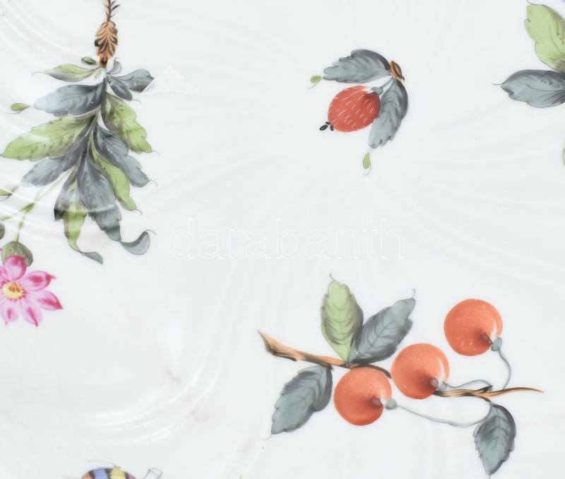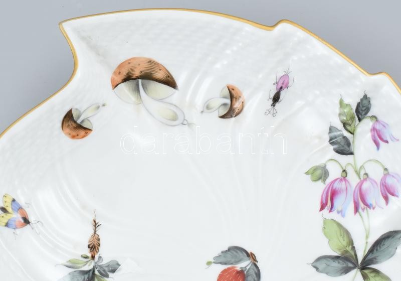Herendi BFR (BOUQUET de FRUITS) gyümölcs mintás nagy leveles kínáló, jelzett, kopásnyomokkal. 24x20x6,5cm