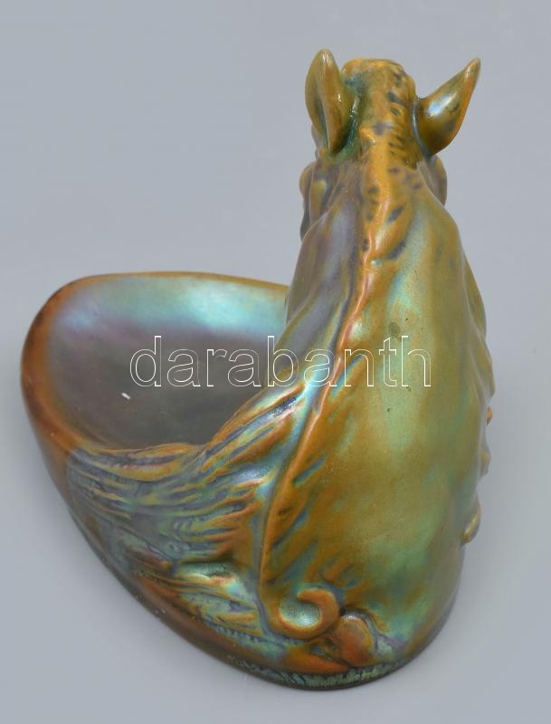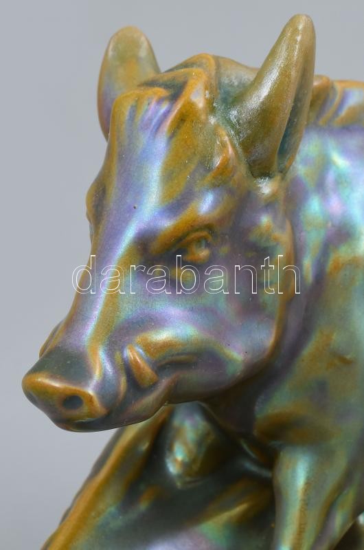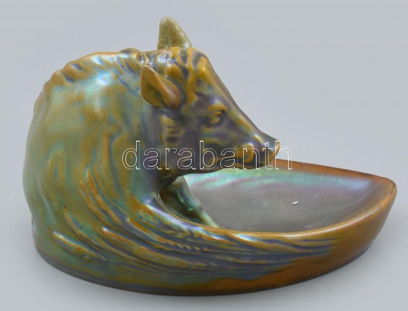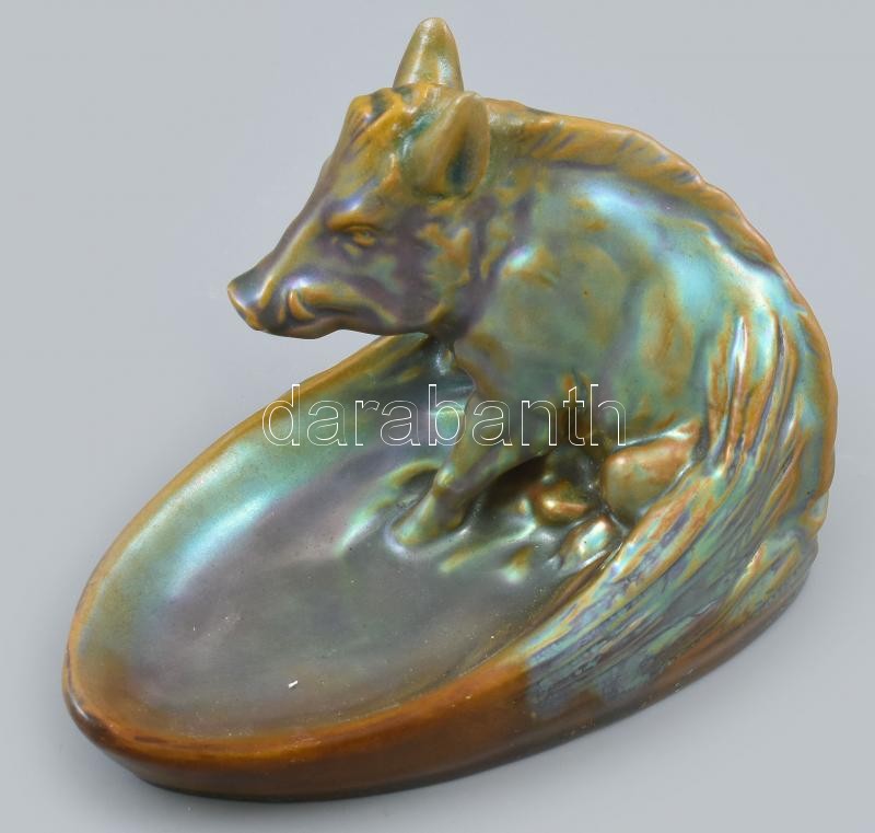 Zsolnay eozin mázas, vaddisznós névjegytartó, jelzett, 1930 körül, res...