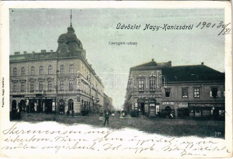 1901 Nagykanizsa, Csengeri utca, Fantl testvérek, Goldstein J., Kilik Béla, Neu és Klein üzlete. Fischel kiadása (EK)