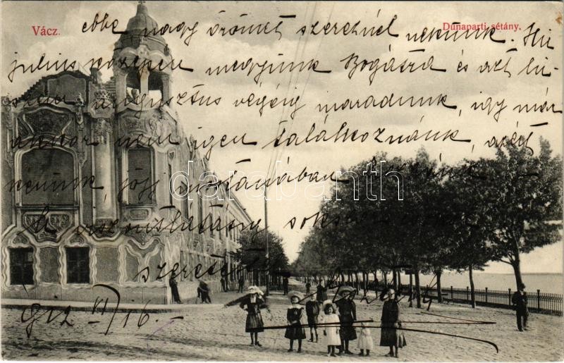 1912 Vác, Duna-parti sétány, szecessziós épület. Demjén Lajos kiadása (EK)