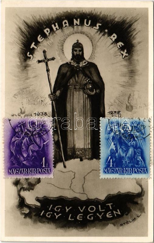 1038-1938 Sanctus Stephanus Rex / Szent István király. Így volt, így legyen! / Hungarian irredenta propaganda, Stephen I of Hungary s: Stélik L.