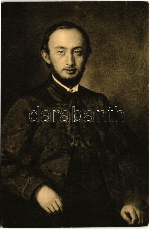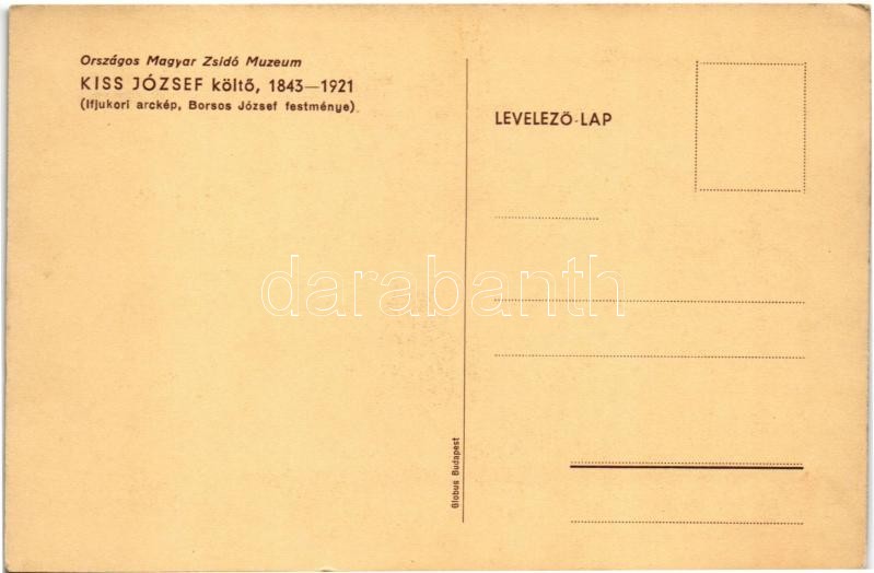 Description: Kiss József (1843-1921) zsidó származású magyar költő, szerkesztő, a Petőfi Társaság tagja. Ifjúkori arckép, Borsos József festménye. Országos Magyar Zsidó Múzeum / Hungarian Jewish poet. Judaica art postcard. Published by the Hungarian Jewish Museum s: Borsos József
