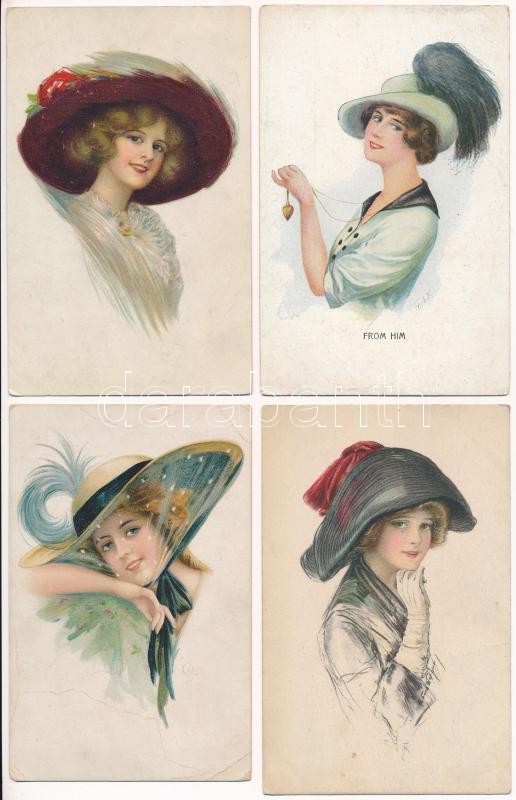 4 db RÉGI motívum képeslap: hölgyek kalappal / 4 pre-1945 motive postc...