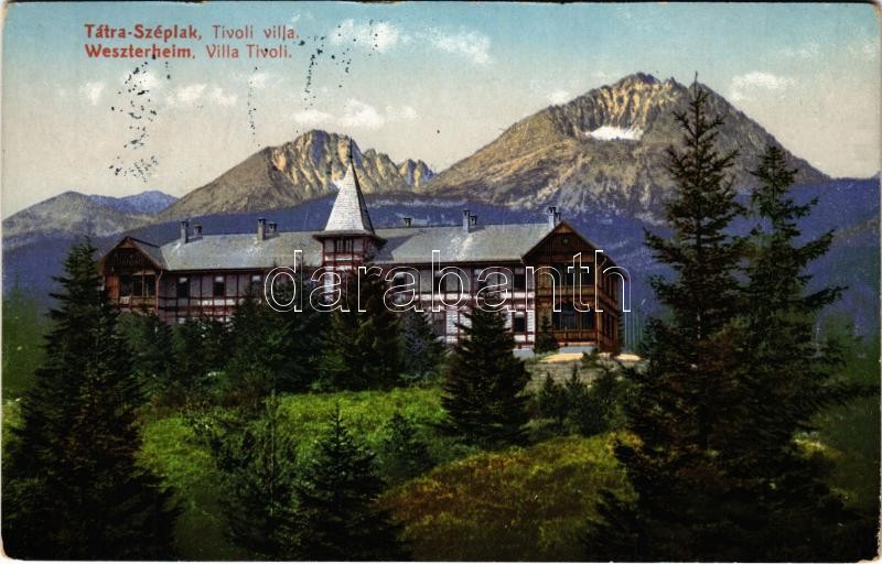 Description: 1917 Tátraszéplak, Tatranska Polianka, Westerheim (Magas-Tátra, Vysoké Tatry); Tivoli villa. Cattarino S. utóda Földes Samu kiadása 33. sz. / villa (EK)