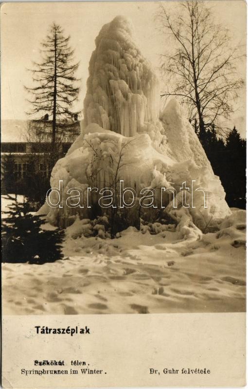 Description: 1917 Tátraszéplak, Tatranska Polianka, Westerheim (Tátra, Magas-Tátra, Vysoké Tatry); szökőkút télen. Dr. Guhr felvétele / Springbrunnen im Winter / fountain in winter in the High Tatras (EK)