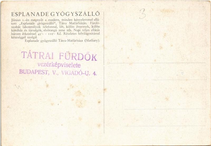 Matlárháza, Matliary, Tatranské Matliare (Tátra, Magas-Tátra, Vysoké Tatry); Hotel Esplanade szálloda reklámlapja / hotel advertisement