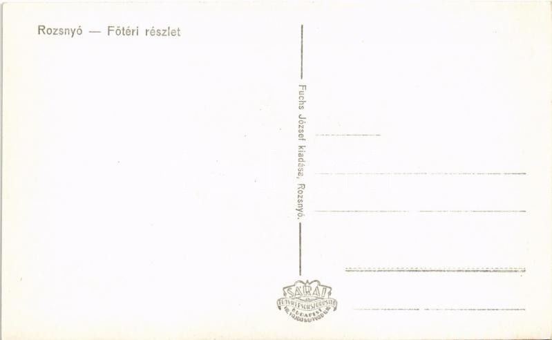 Rozsnyó, Roznava; Fő tér, templom, Tátra Bank, Első gömörmegyei temetkezési intézet, Schnitzer üzlete. Fuchs József kiadása / main square, church, bank, funeral company, shops