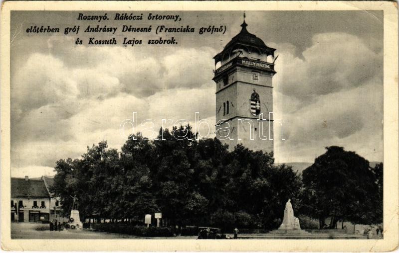 Rozsnyó, Roznava; Rákóczi tér őrtorony, Gróf Andrássy Dénesné (Francis... https://www.darabanth.com/en/416-Online-auction/416.0/Postcards/Slovakia~2000010/Rozsnyo-Roznava-Rakoczi-ter-ortorony-Grof-Andrassy-Denesne-Franciska-szobor-Kossuth-L~II2615740