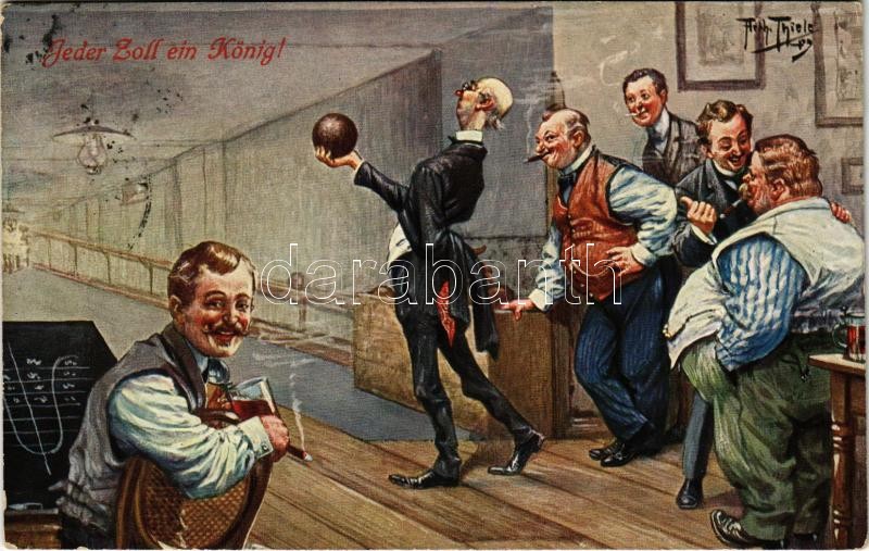 1914 Jeder Zoll ein König! / Men at the bowling alley, drinking and smoking. T.S.N. Serie 1427. (6 Dess.) s: Arth. Thiele