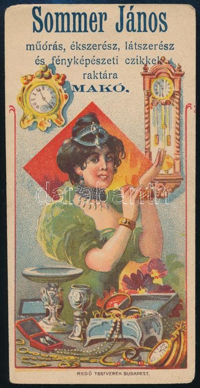 Makó, Sommer János műórás, ékszerész, látszerész litho számolócédula