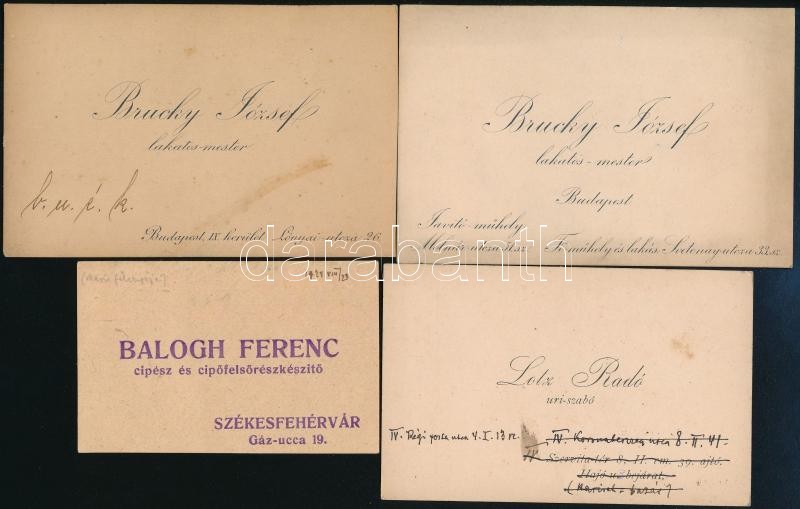 https://www.darabanth.com/en/417-Online-auction/417.0/Art-and-other-collectibles/Advertisement~23/cca-1900-1930-Vegyes-nevjegykartya-tetel-4-db-Bp-Brucky-Jozsef-lakatos-mester-2-db-Lotz-Rad~II2630697