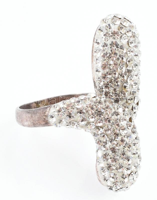 Ezüst(Ag) kövekkel gazdagon kirakott extravagáns gyűrű, jelzett, méret...