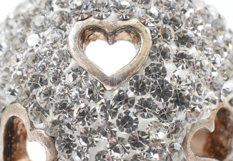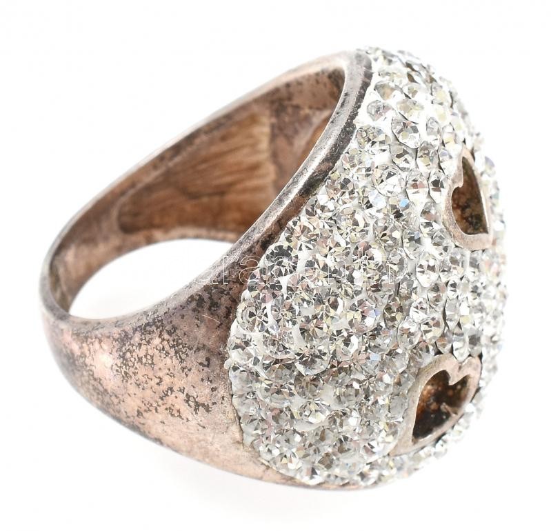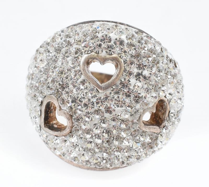 Ezüst(Ag) kövekkel gazdagon kirakott szívecskés gyűrű, jelzett, méret:...