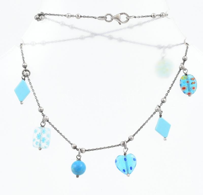 Ezüst(Ag) nyaklánc műanyag gyöngy díszítéssel, jelzett, h: 40 cm, brut...