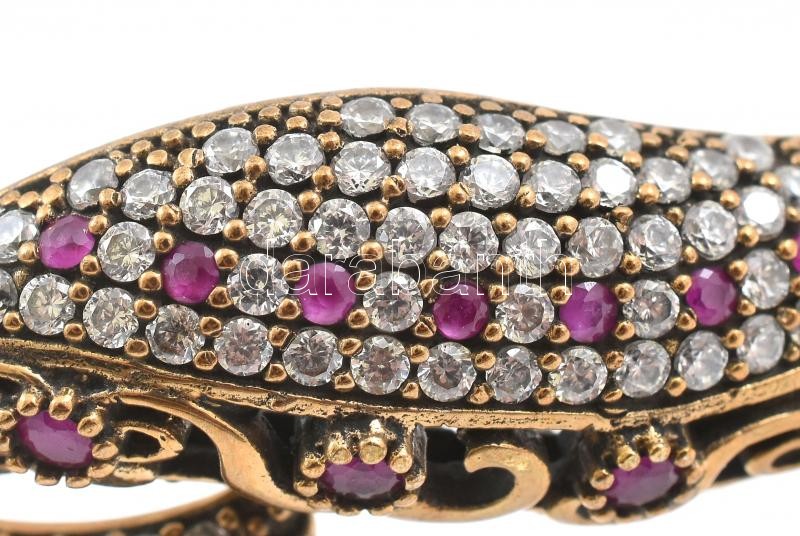 Ezüst(Ag) rubinköves karperec, jelzett, 6,5×5 cm, bruttó: 22,1 g