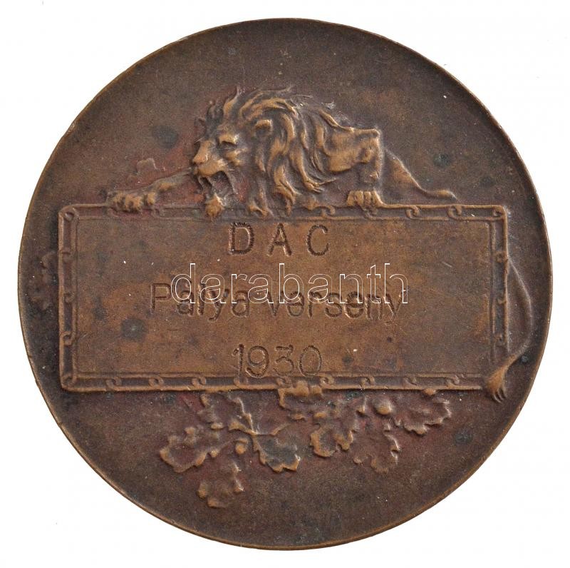 1930. "DAC (Dunántúli AC?) Pályaverseny" kétoldalas Br motorsport érem, "Huguenin" gyártói jelzéssel (40mm) T:2,2-