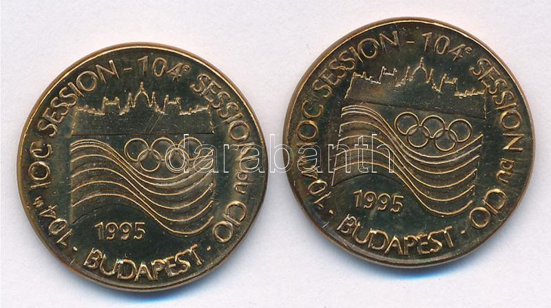 1995. "104. Nemzetközi Olimpiai Bizottsági Ülés Budapest" angol és francia nyelvű Br emlékérem (22mm) (2db) T:1-,2