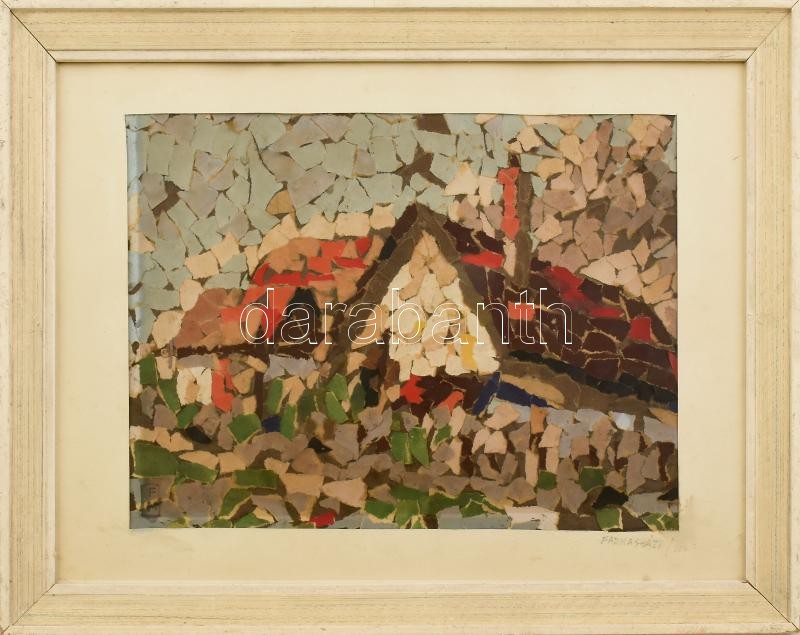 Farkasházy jelzéssel: Ház. Kollázs, papír. Üvegezett fakeretben. 23x32...