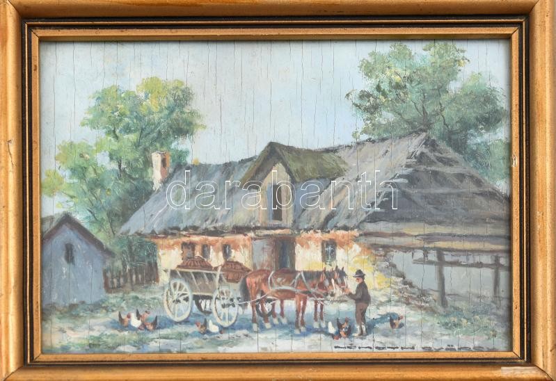 Németh György (1888-1962): Tanya. Olaj, fa, jelzett. Keretben, máz rep...