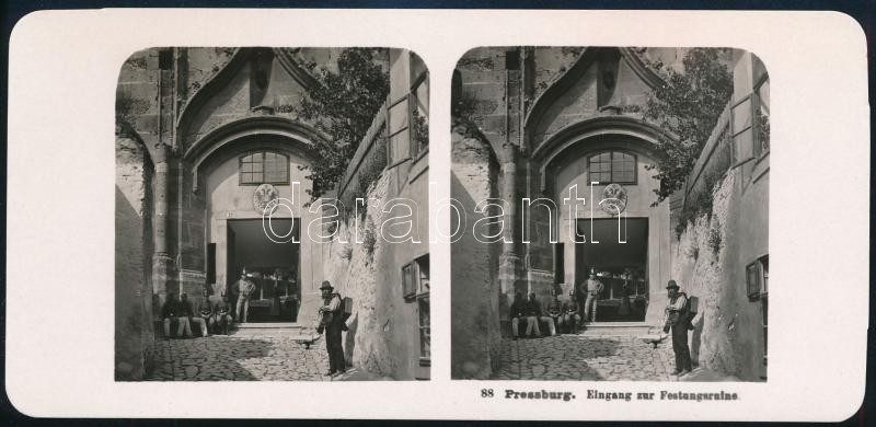 1904 Pressburg / Pozsony, bejárat a várba, sztereofotó, 9×18 cm